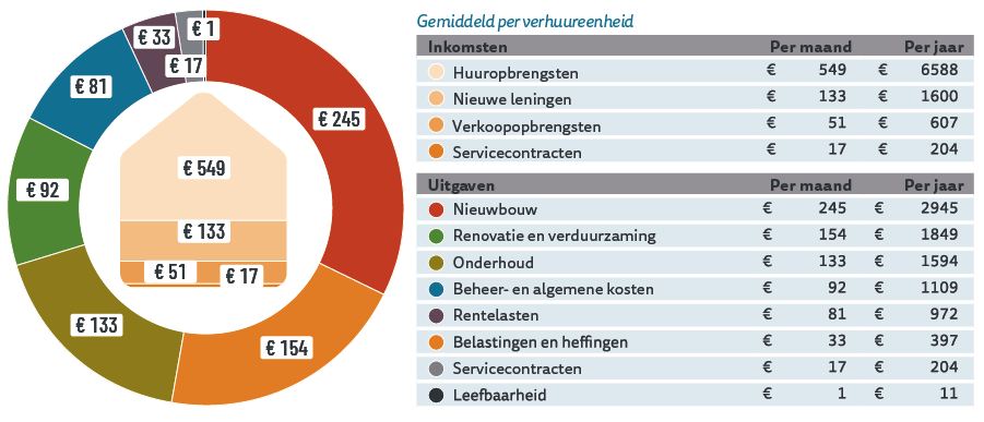 In 2023 was de gemiddelde huurprijs voor een (zelfstandige) huurwoning bij Zayaz € 540 per maand. Hieronder ziet u wat er afgelopen jaar per verhuureenheid gemiddeld bij ons binnenkwam, en waar dit geld naartoe ging.