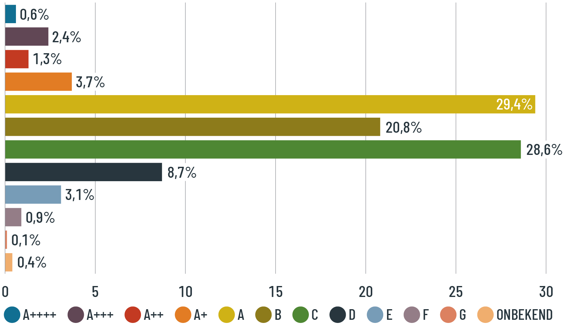 Eind 2023 had 86,8% van onze woningen een energielabel C of beter (2022: 84,4%).