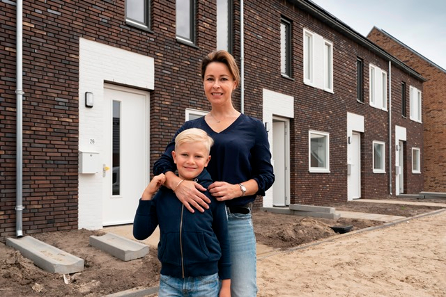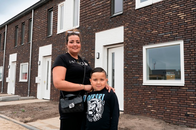 "We hebben hier zo naar uitgekeken", zegt Hania. Enthousiast lopen zij en haar 7-jarige zoon hun nieuwe straat in, Lommergroen in De Groote Wielen. "Door corona waren er geen kijkdagen. We hebben wel filmpjes gezien, maar nu is het echt zover." Philippe: "Toen we door het raam gingen kijken, vond ik de stenen van de oprit al fijn! Kijk, dit is mijn nieuwe kamer. Deze muur wordt rood, deze wit en deze blauw, de Nederlandse vlag. En de zolder is zo groot, daar kan ik wel voetballen. Dit is mama's slaapkamer. Mam, als je jouw bed hier zet, maken we daar een speelhoek voor mij." Hania: "Nee hoor, je hebt nu overal plek om te spelen. De zolder is inderdaad veel groter dan ik dacht, mooi voor mijn kantoor, de wasmachine en de droger. Wat is het allemaal netjes afgewerkt – en energiezuinig, dus goed voor het milieu. Super belangrijk, want deze kleine man moet later ook nog van de wereld kunnen genieten."